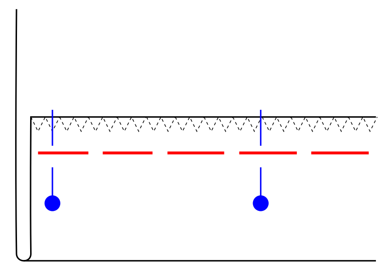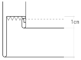 裾全体がカーブしたスカートで、全体が波打っている場合は、しつけ糸を2本取りにし、裁ち端から5mm位の位置を細かく並縫いします(赤線)。