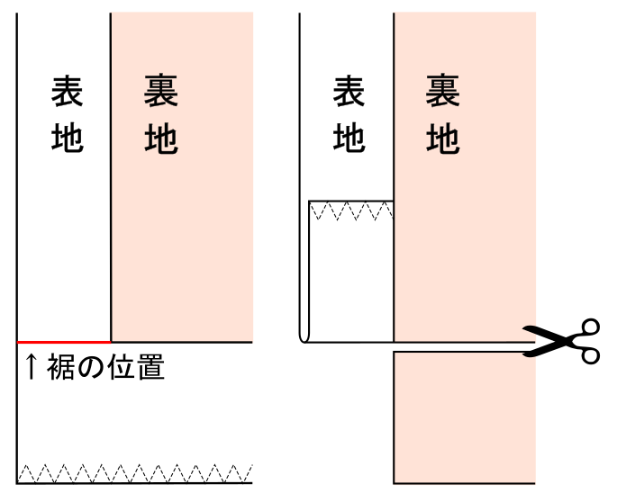 ④ 裁ち端がほつれないように、ロックミシンやジグザグミシンをかけます。