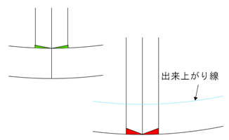 点線が出来上がり位置の印だと思ってください。