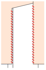 図の赤点線のように、印と印の中間を縫います。縫い始めと縫い終わりは返し縫いします。