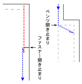 ベンツの切り込みの部分は、引っ張ったりして破らないように折り、自然に割ります。ファスナー部分と同じ感じです。(図[3])